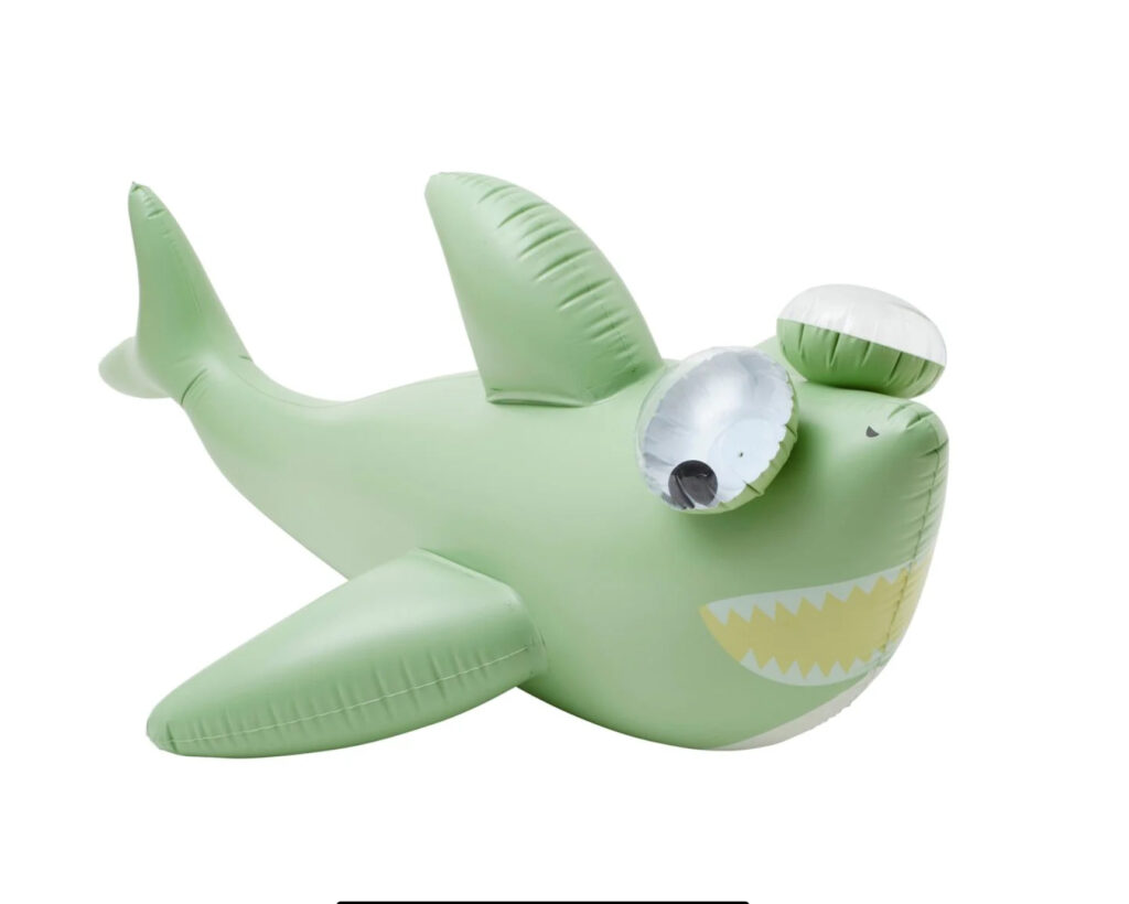 FLOTADOR DE PISCINA FORMATO TIBURÓN COLOR VERDE, CON ASPERSOR