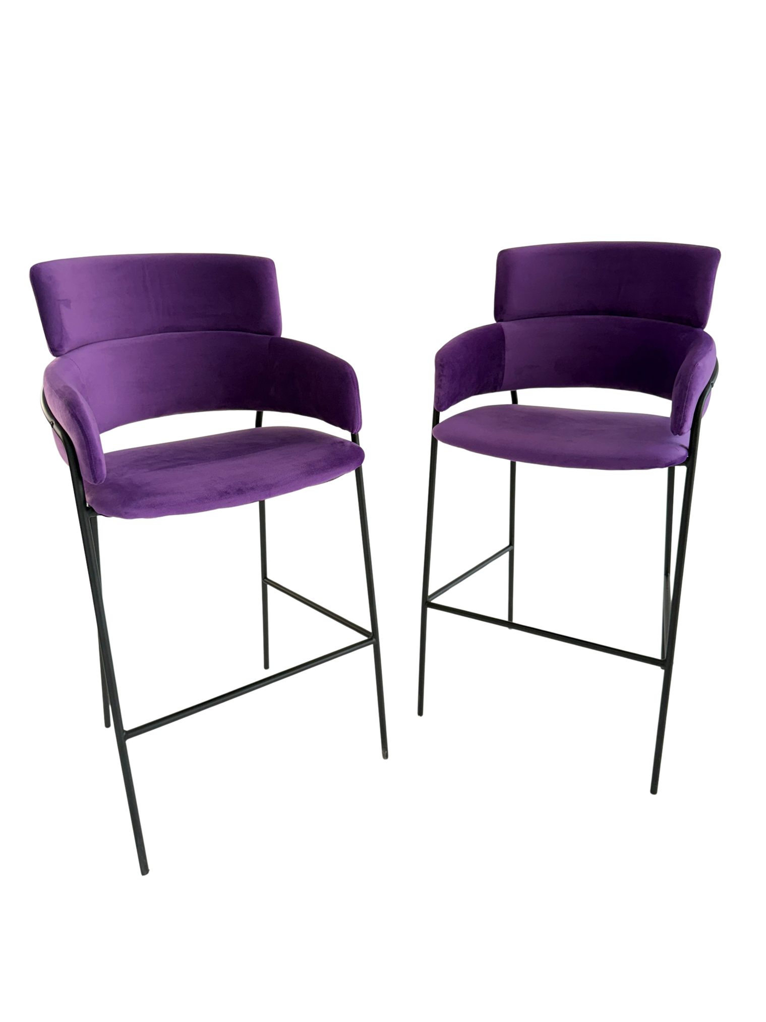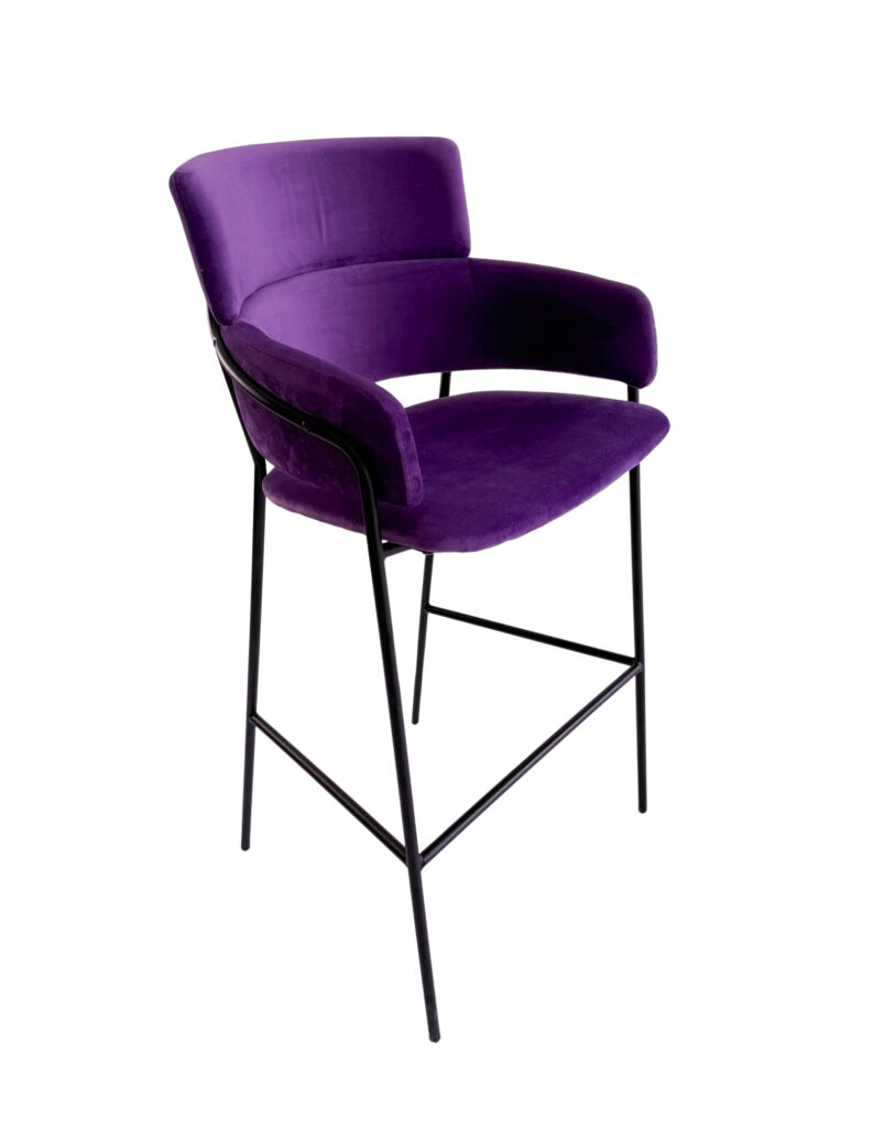 TABURETE ATERCIOPELADO COLOR PURPURA CON PATAS EN COLOR NEGRO